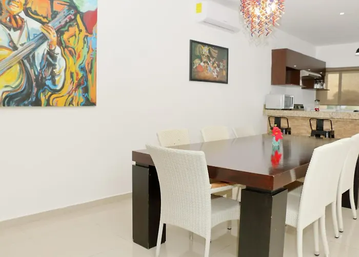 El Apartamento Oasis Del Sol Playa del Carmen está situado en el distrito Centro, a unos 1 km de la iglesia católica Nuestra Señora del Carmen, y cuenta con centro de fitness. Además de las vistas del jardín, este apartamento de 180 m² garantiza la relajación de los huéspedes con bañera de hidromasaje.